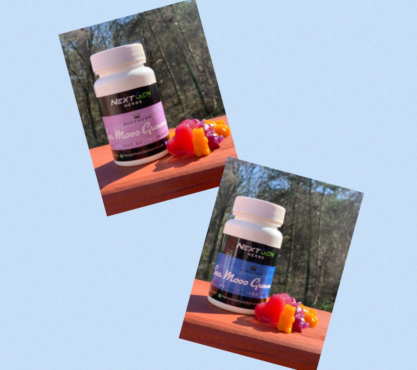 OUR KINGDOM AND QUEENDOM GUMMIES ARE INFUSED WITH WILD CRAFTED SEA MOSS AND PLANT BASE HERBS FOR WOMEN AND MEN. THESE VEGAN GUMMIES ARE FREE OF GELATIN, WHITE SUGAR, ARTIFICIAL COLORING AND HIGH FRUCTOSE!